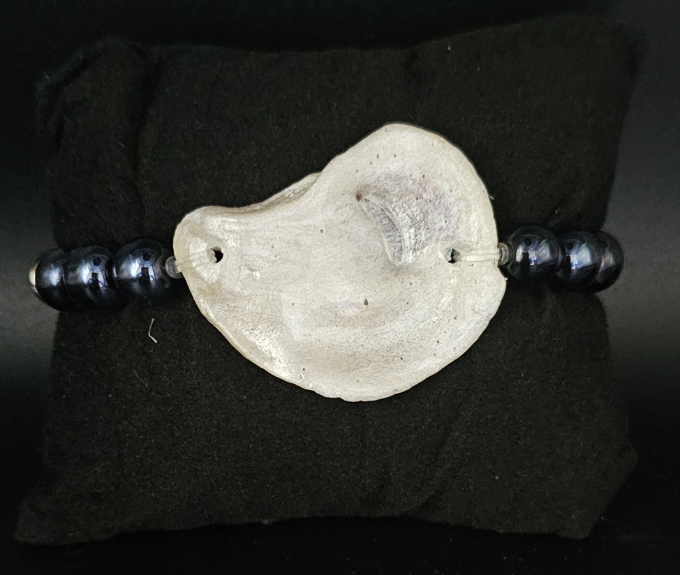 Elevate your accessory collection with the Oyster Shell Bracelet featuring deep violet glass beads. This handcrafted piece combines the natural beauty of oyster shells with the vibrant hues of rich violet tones, creating a unique and eye-catching design. Made with attention to detail, it’s a perfect blend of natural materials and bold colors. Each bracelet is one of a kind, with slight variations in the shell for a truly individual style.